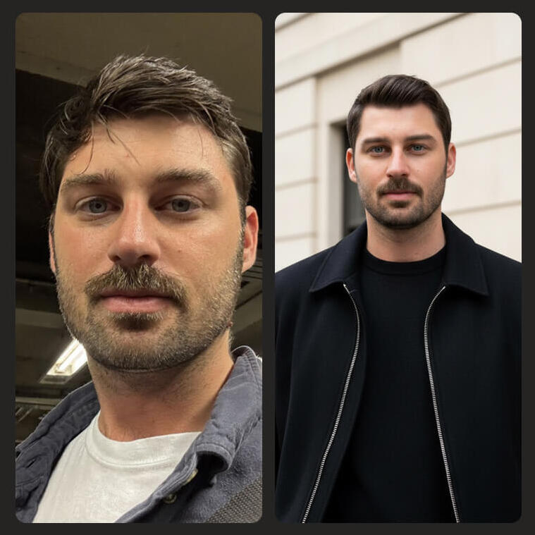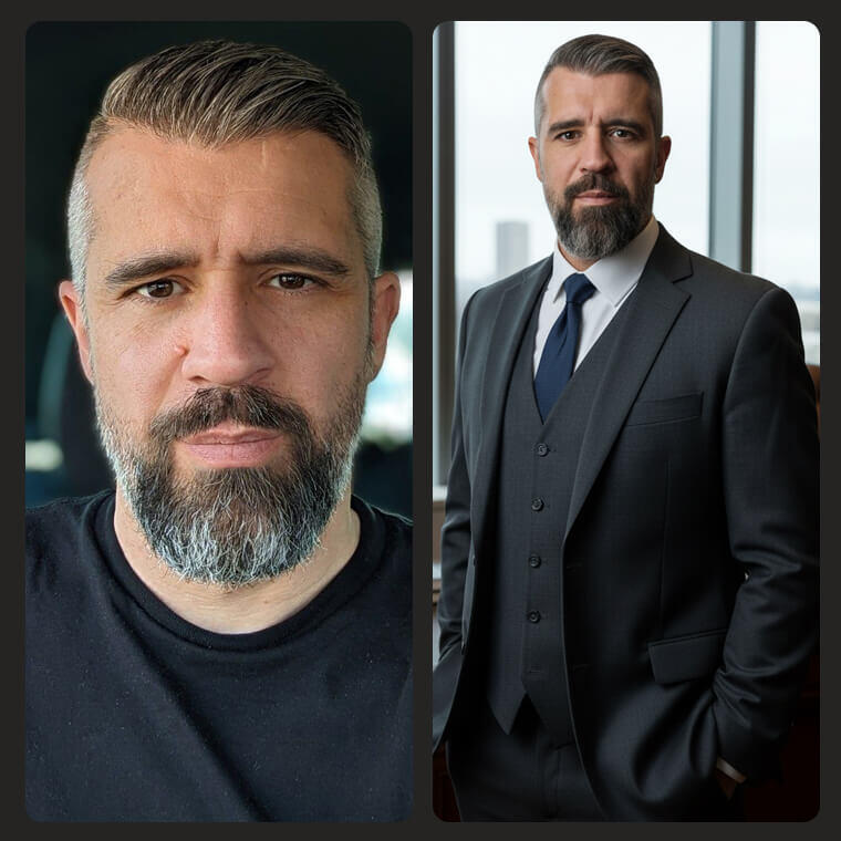 Retaining your authentic features and maturity, while adding executive polish. No "plastic AI" look.