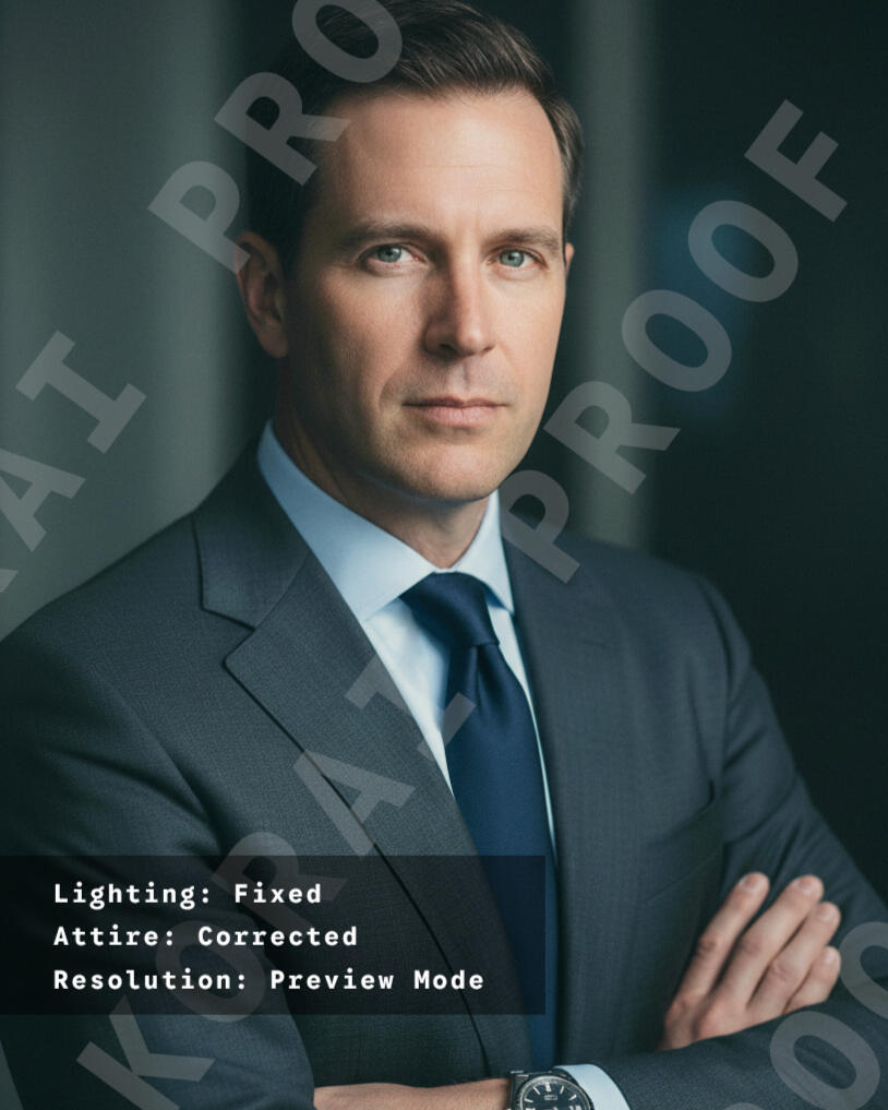 Professional Image Assessment We review your submitted photos and evaluate how your current image reads in a professional context (LinkedIn, portfolio, business use).